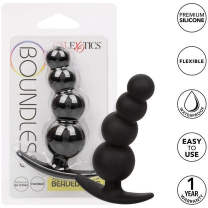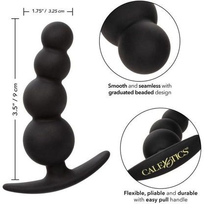The Passionate Butt Plug is designed for streamlined pleasure with a graduated beaded design, flexible body, and easy-pull handle base.