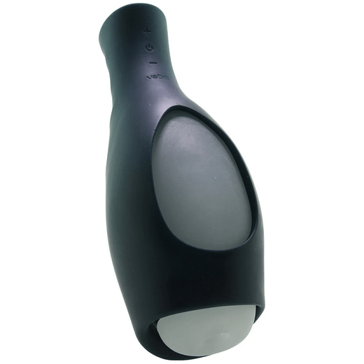 Designed for a comfortable and secure grip, Védo's rechargeable masturbator features a soft, textured inner sleeve tucked away in a firm case.