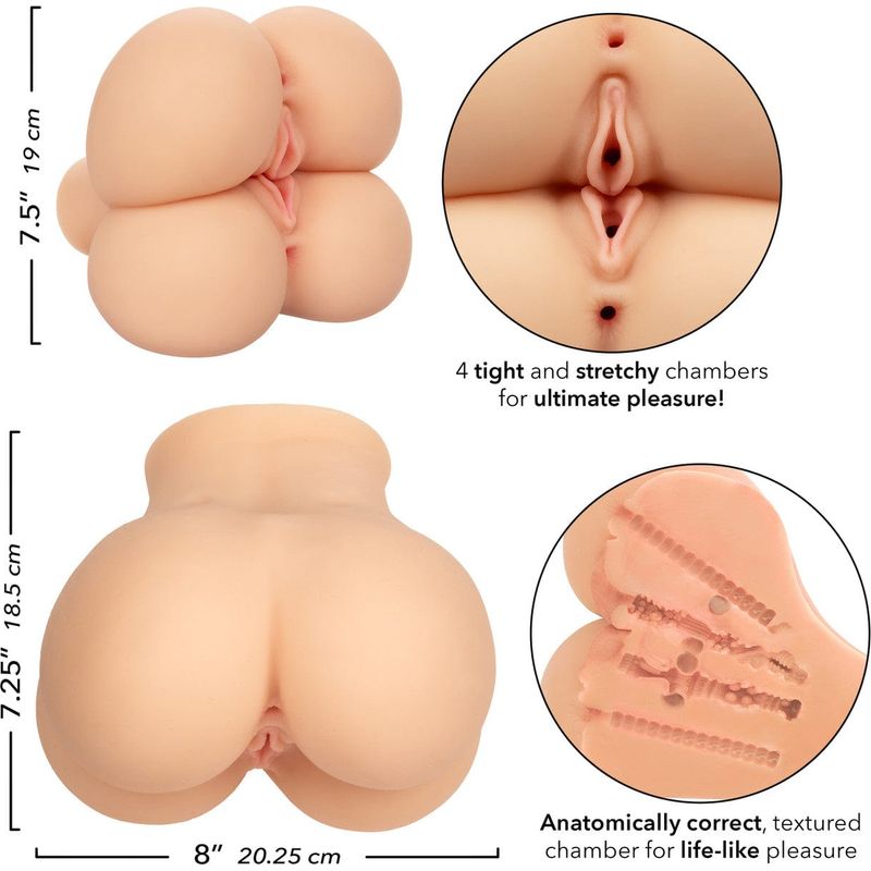 4 tight, stretchable chambers for unlimited pleasure: 2 pussies and 2 asses
