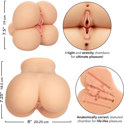This double-entry masturbator, faithfully mimicking the female anatomy, lets you explore your deepest fantasies with a meticulously crafted design at 7 lb/3.2 kg.