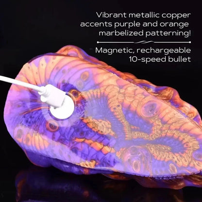 Among the remnants of this transformed world, Copperhead emerges: a singular being of metallic beauty, shaped to explore the most intense pleasures. His coppery body, purple contact points and organic texture make him an erotic relic from another world, ready to unite with your flesh.