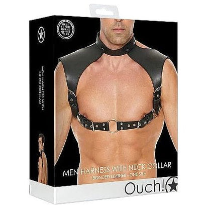 Ce harnais est confectionné avec des épaules en cuir noir épais qui attirent l'attention et parlent de tout ce qui est fort et masculin, tandis que le collier attaché avec une fermeture à boucle en métal facilite le jeu.