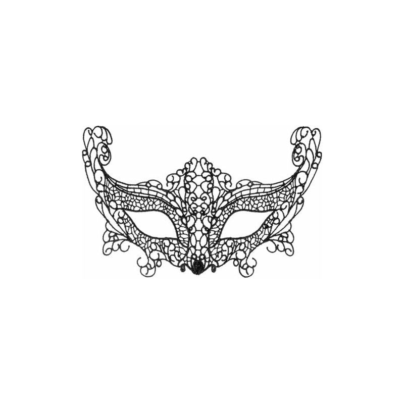 Masque en dentelle guipure noire noué par un ruban. Ce masque vous accompagnera pour vos soirées sensuelles ou coquines.